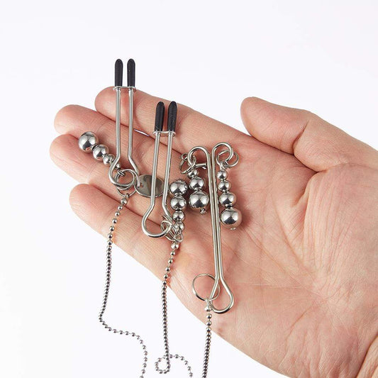 Beaded Pendant Chain Nipple to Clit Tweezer Clamp Set